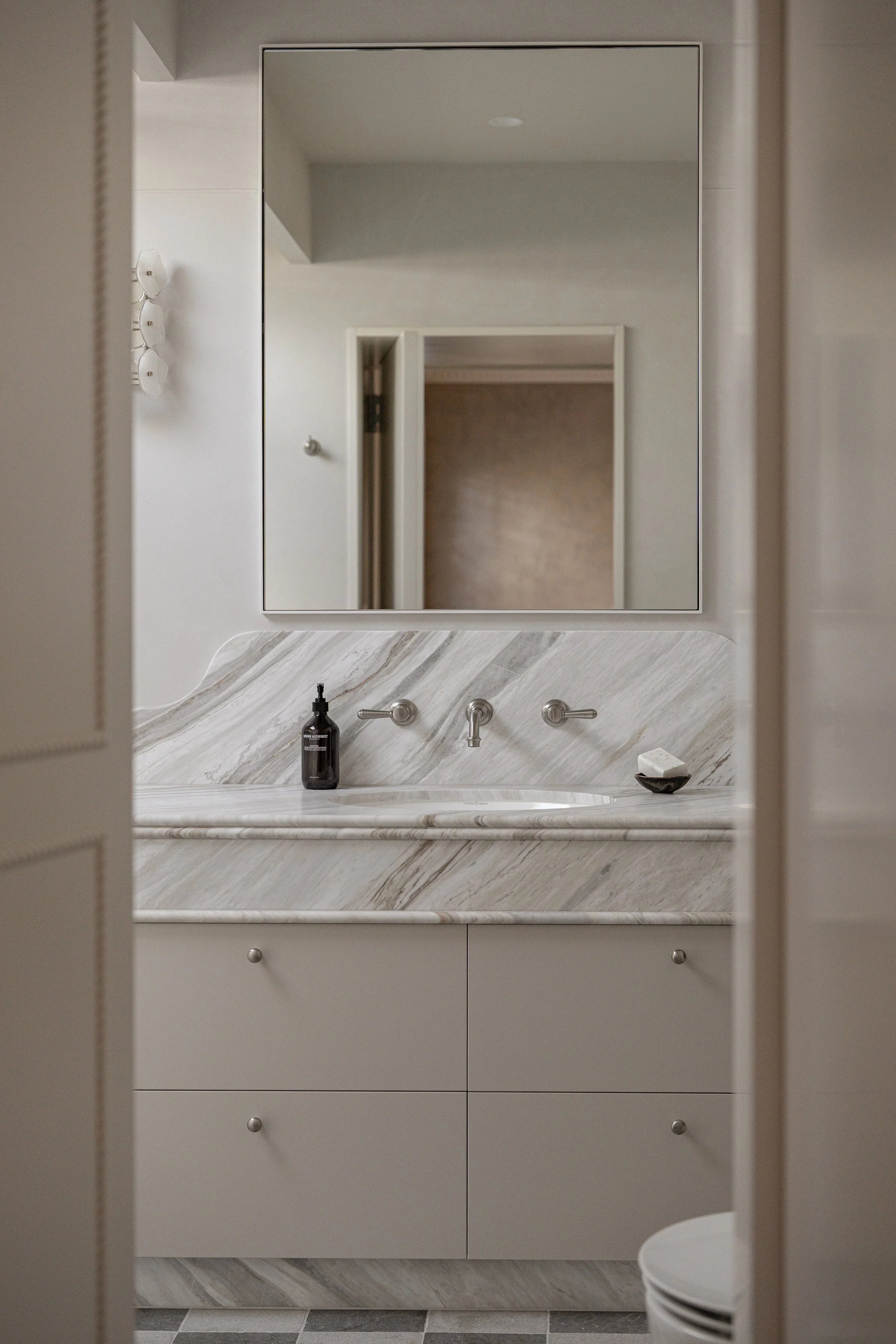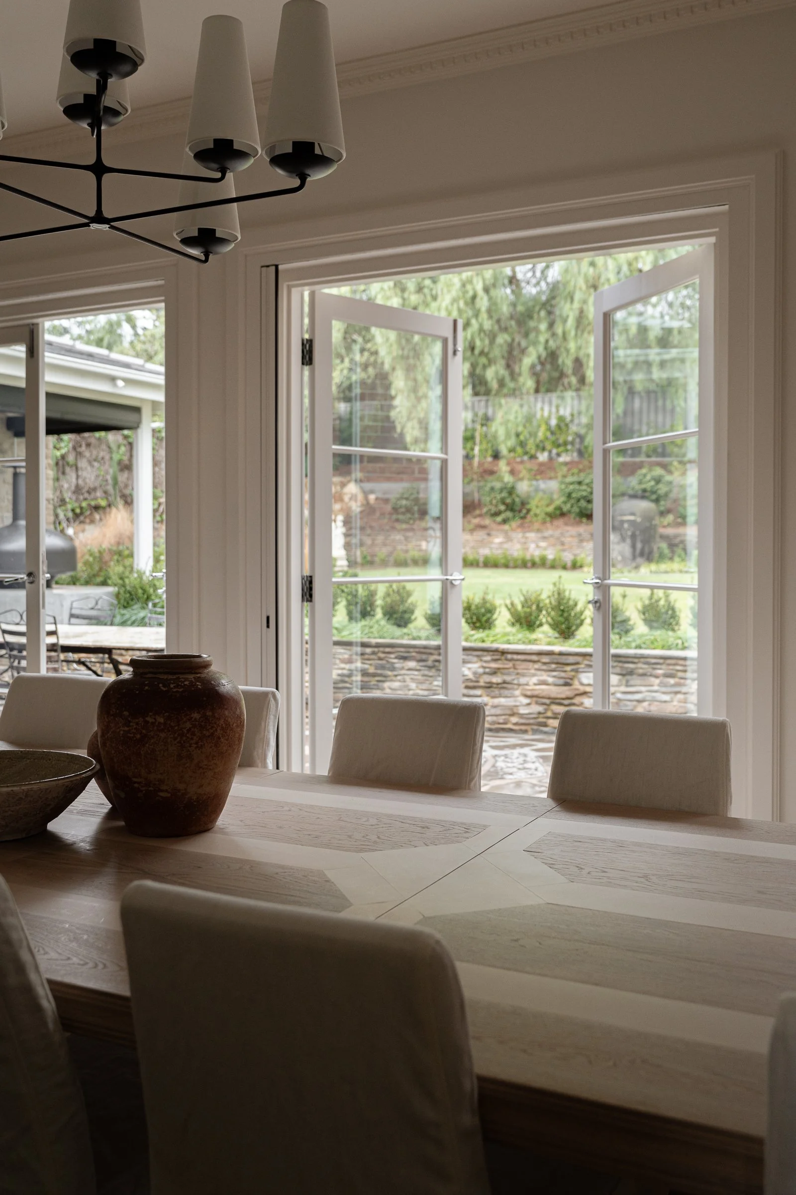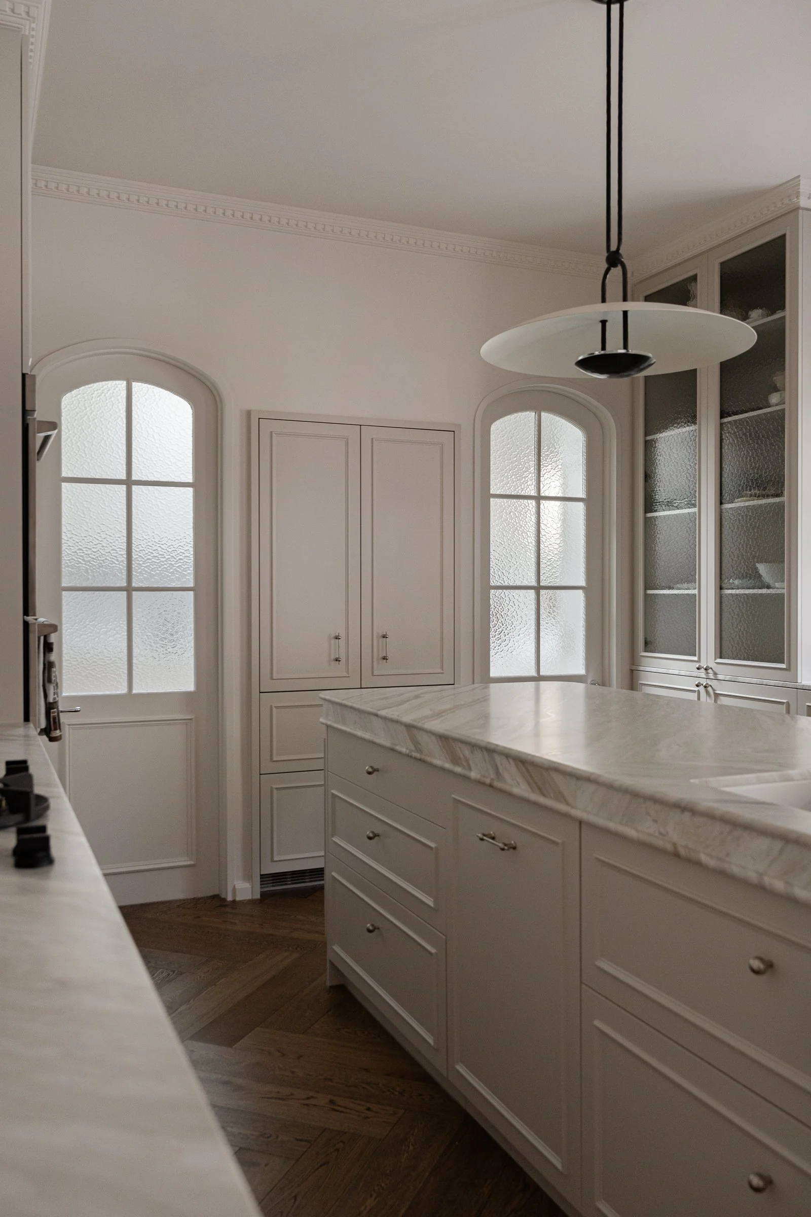 The redesign introduced a more intuitive flow while maintaining formal character. Alchemists ID refined the interiors with tailored layouts, bespoke joinery, and curated finishes for a family who loves to entertain and host. Highlights include a guest bathroom with a concealed ensuite and a material palette that balances timeless elegance with bold, playful details.