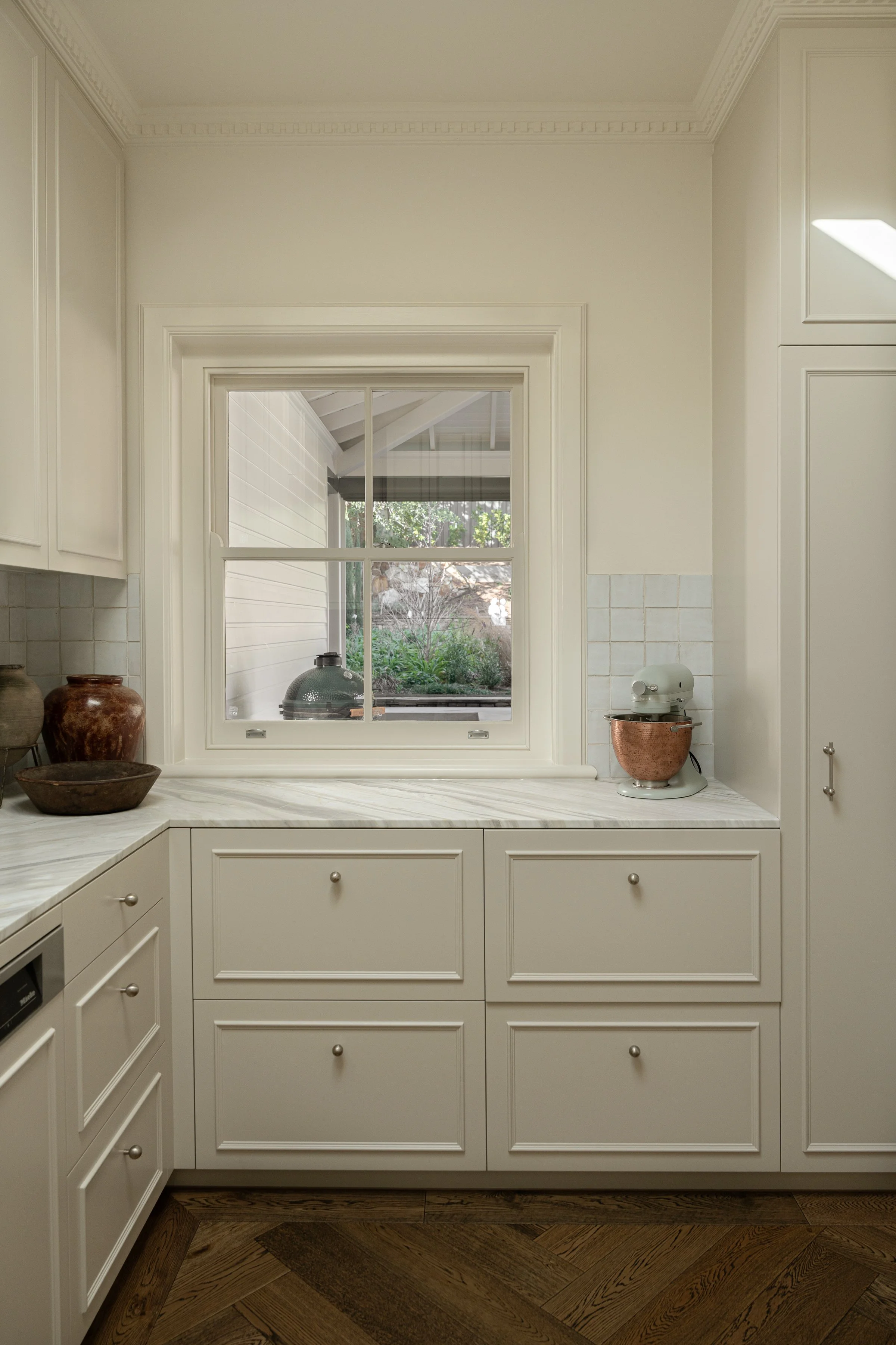 Nestled in a quiet Springfield cul-de-sac beside the historic Carrick Hill estate, this 1967 Neo-Georgian residence sits on a 1,282m² garden allotment. Purchased in 2021, the home was reimagined by Hurren Architects and Alchemists ID for modern family living.